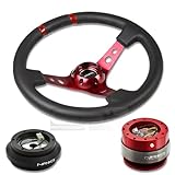 NRG-SRK-190H+016R-RD+200RD, NRG Innovations 13.78" 350mm 3" Deep Dish Style Black Leather Red Center Marking Red Spokes Racing Steering Wheel Combo with 6 Hole Short Hub Adapter with Gen 2.0 Red Quick Release Kit SRK-190H
